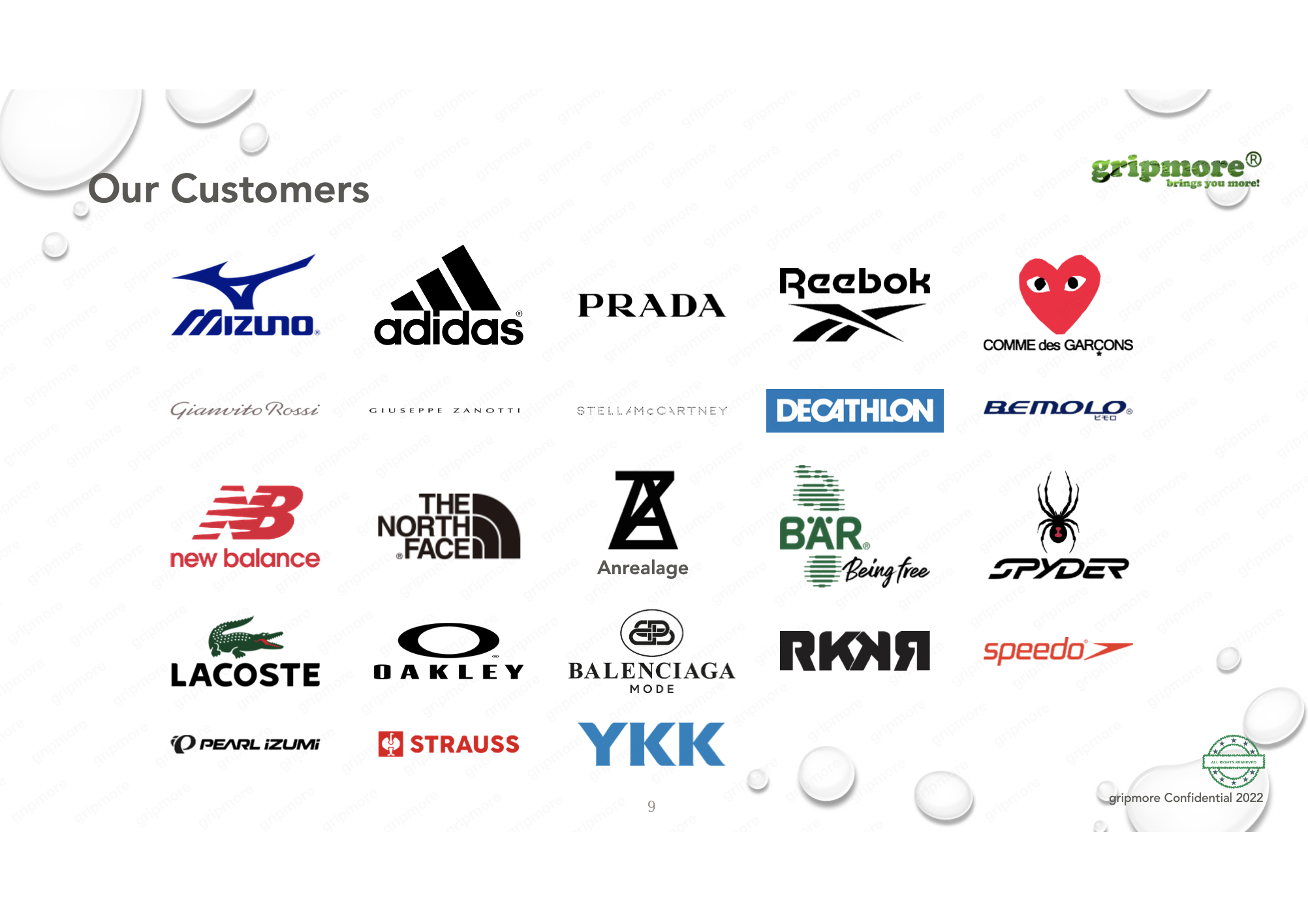 gripmore co., ltd. was established in 2002. gripmore is one of the leading professional material suppliers for footwear and apparel brands.